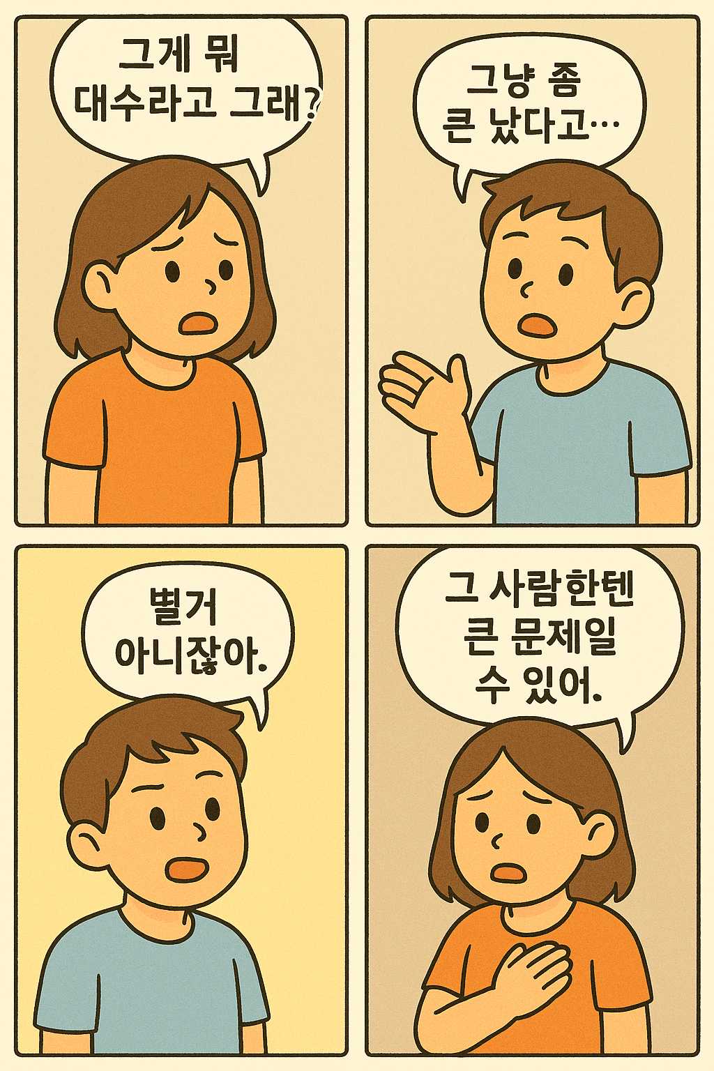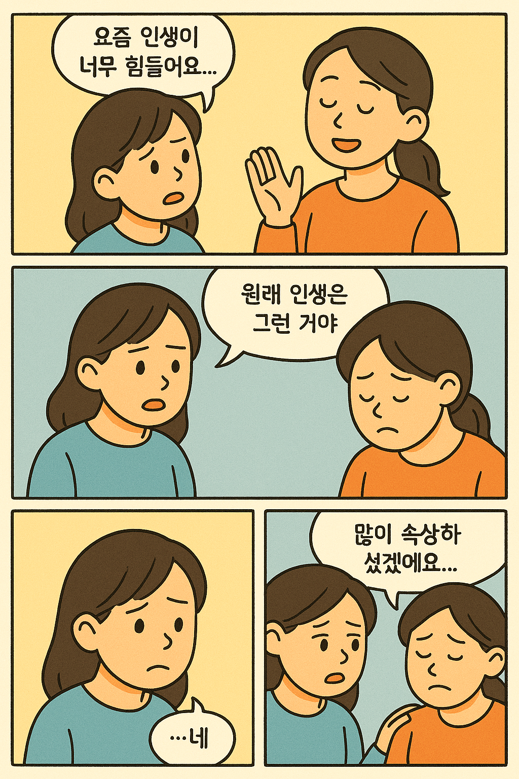 7. “그거 나도 겪어봤어” (그리고 자기 이야기 시작)
